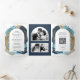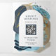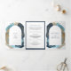 Boho Taupe Navy Blue Brush Strokes QR Code Wedding Tri-Fold Invitation