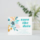 Boho Teal Blue and Gold Watercolor Floral Wedding Announcement Postcard
