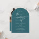 This boho teal blue photo and QR code arch wedding invitation is perfect for a minimalist wedding. The bold dark turquoise jewel tone modern bohemian design features simple rustic calligraphy with a unique yet classic style.