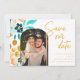 Boho Teal Blue and Gold Watercolor Floral Wedding Save Our Date with Your Photo