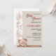 Gender neutral and absolutely adorable baby shower invitation with a boho feel in the design that features a floral line up the left side of the card and a cute teddy bear leaning on a piece of wood at the bottom. Text is easy to update with your specifics.