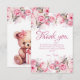 Boho Teddy Bear Girl Pink Bear Floral Birthday Thank You Card