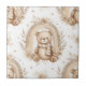 Ceramic Tile - Charming boho teddy bear pattern with soft neutral rainbows, delicate florals, and scattered stars in warm beige tones. Cosy, dreamy aesthetic with a modern minimalist feel. Ideal for babies, toddlers, new parents, and boho nursery lovers.