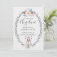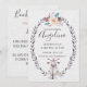 A beautiful invitation with a wreath of greenery, teepee, floral arrangement & tribal arrows over a faux watercolor background paper. Includes a Book Request poem on the back or you can edit to write your own message.