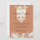 "Boho Terra Cotta Tropical Floral Pampas Birthday Invitation." This trendy and elegant, warm and welcoming BOHO floral was painted in Watercolor. Rich terra cotta rust trendy background colour sets off the white orchid and dusty pink rose floral over a decorated macrame weaving with your special birthday honoree's name in script calligraphy. All artwork was painted by internationally licensed artist, Audrey Jeanne Roberts, copyright.