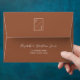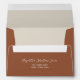 Simple, minimalist, elegant, modern calligraphy script white and terracotta wedding invitation 5x7 envelope with monogram - initials at the top flap and return address.