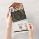 Modern, bohemian, minimalist burnt orange terracotta black and white all-in-one wedding invitation with custom four pictures of the couple.