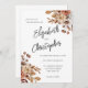 A boho browns and terracotta floral script calligraphy elegant wedding invitation. All fields are editable.