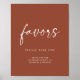 Boho Terracotta Burnt Orange Wedding Favours Sign Poster. The text 'favours' is not editable. Can be used for weddings, bridal showers, baby showers, etc.
