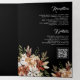 Boho Terracotta Floral Wildflower Black Wedding Tri-Fold Invitation