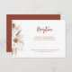 A modern reception card with black script, watercolor boho terracotta pampas grass, earthtone colours.