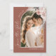 This Boho Terracotta Pampas Grass Photo Wedding Save the Date Card will help you share the good news of your engagement and upcoming wedding. This minimalist style features two photos on a terracotta earth tone background with an arch design and modern script font. Beautiful watercolor florals with papas grass and eucalyptus accent the card. Personalise with your own photos and details about your wedding.