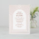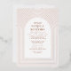 A unique design with multiple delicate arch lines surrounding your wedding invitation information in rose gold foil stamped, over a white background with all text in terracotta. On the back add your wedding details and rsvp information.