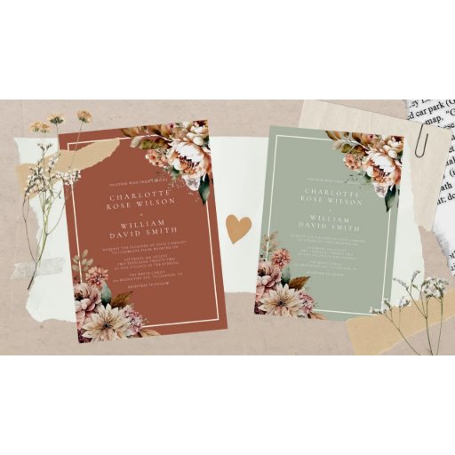 Boho Terracotta Watercolor Flowers Autumn Wedding Invitation