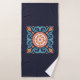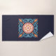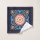 An intricate boho-inspired tile design in blue, red, and warm earth tones. Designed for a vintage-meets-modern look, ideal for coasters, wall art, bedding and other modern look products.