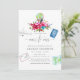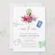 Boho chic pink and blue watercolor floral bouquets travel themed bridal shower invitations designed to be quickly and easily customisable to your event specifics.