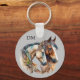 This keychain features a beautiful watercolor painting of two horses decorated with tribal feathers. A matching wreath surrounds them. Your two letter monogram is at the top left. The back has your text in two fields.
