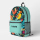This eye-catching backpack features an exclusive all-over print with lavish tropical birds and exotic flowers on a sophisticated black background. The rich color palette of ochre, turquoise, yellow, and orange creates a vibrant, life-affirming design that radiates bohemian charm. The customizable name "Samantha" on the front pocket adds a personal signature to this unique piece.