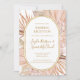 This boho tropical botanical | wedding reception invitation is perfect for your elegant rustic floral, green, peach, rose gold wedding reception. Design features a gold frame or bouquet with modern blush pink pampas grass, simple sage, ivory, champagne palm leaf, and classic beach greenery. The flowers may include pink rose and orchid. The design is ideal for a classy vintage terracotta, beige, rust, winter, spring, fall wedding. Please find other matching or coordinating wedding stationery in the rest of the collection suite.