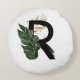 Boho Tropical Greenery Letter R Monogram Round Cushion