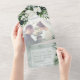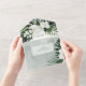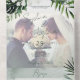 AVAILABLE WITH OR WITHOUT A QR CODE OR DINNER OPTIONS. This design features beautiful, lush tropic greenery and white florals on a soft lush green watercolor background. Personalise it with your own special photo. Perfect for the destination or beach wedding. Created by Simply Farmhouse Press.