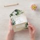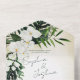 AVAILABLE WITH OR WITHOUT DINNER OPTIONS. ALSO AVAILABLE WITH A QR CODE IN THE RSVP AREA. This design features beautiful, lush tropic greenery and white florals on a soft sand yellow watercolor background. Perfect for the destination or beach wedding. Created by Simply Farmhouse Press.