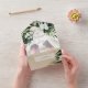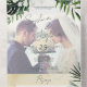 AVAILABLE WITH OR WITHOUT A QR CODE OR DINNER OPTIONS. This design features beautiful, lush tropic greenery and white florals on a soft lush green watercolor background. Personalise it with your own special photo. Perfect for the destination or beach wedding. Created by Simply Farmhouse Press.