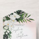 AVAILABLE WITH OR WITHOUT DINNER OPTIONS INSTEAD OF A QR CODE. This design features beautiful, lush tropic greenery and white florals on a soft peach blush watercolor background. Change the QR code to your wedding website or any other site guests should visit. Perfect for the destination or beach wedding. Created by Simply Farmhouse Press.