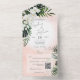 Boho Tropical Greenery Pink Blush QR Code All In One Invitation