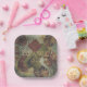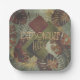 A bohemian 70's style tropical abstract pattern with palm and monstera leaves. In colours of burgundy, green, and brown. An elegant summer pattern.