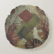 Boho tropical monstera palm leaf 70's summer thr round cushion