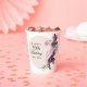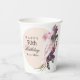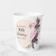 Add a memorable personal touch to a 50th birthday celebration with these custom paper cups. The theme is boho tropical floral and is fabulous! A pale rose beige round frame surrounds the text along with a beautiful pink parrot sitting atop a bouquet of tropical floral elements that include purple protea and orchids with dark berries and jungle greenery. It makes a wonderful party theme with creative and fun tropical style. All of the text can be customised, so this label can be used for any age birthday.