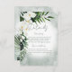 This wedding details card design features beautiful, lush tropic greenery and white florals on a soft green watercolor background. Perfect for the destination or beach wedding. Use these headings or change them to match your information. Created by Simply Farmhouse Press.