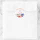 This round sticker is a picturesque expression of gratitude, adorned with lively watercolor spring flowers in a delightful palette of red, blue, magenta and yellow. This round watercolor thank-you sticker not only conveys heartfelt appreciation but also serves as a delightful piece of art. Perfect for adorning wedding favours, envelopes, or thank-you cards, it captures the essence of gratitude and the radiant beauty of a spring celebration. This sticker is a timeless and personalised token that encapsulates the warmth of thanks and the lively colours of spring, ensuring it becomes a cherished memento for both the bride and groom and their guests.