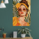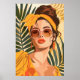 Bring a touch of vintage elegance to your decor with the Boho Vintage Feminine Summer Portrait Art. This captivating artwork features a beautiful woman dressed in a burnt orange boho dress, complemented by an olive green backdrop of palm leaves. The chic addition of sunglasses adds a modern twist to the vintage aesthetic. Perfect for those who adore bohemian style and summer vibes, this piece adds warmth and sophistication to any space.