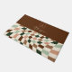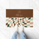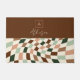 Boho Warped Chequerboard Personalised Monogram Doormat. Shown in earth tone palette in shades of browns and greens, but ALL COLORS ARE EDITABLE. You can select 5 different colours for the chequerboard, as well as the background, and monogram elements. Personalise the template with your monogram initial. © Kimbellished, LLC