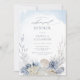This lovely ethereal ocean themed dusty blue rehearsal dinner invitation is perfect for summer beach destination weddings. The coastal watercolor design has a variety of delicate coral, starfish and seashells framing elegant stylish text with modern script font.