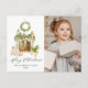 Boho Watercolor Fireplace With Greenery 2 Photo Holiday Postcard