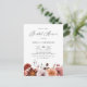 Invite guests to your autumn bridal shower with this customisable boho floral bridal shower invitation postcard. It features watercolor illustrations of brown, burgundy, orange and white autumn flowers with foliage. Personalise by adding names, date, time, venue and return address. This fall botanical invitation postcard is perfect for boho fall bridal showers.