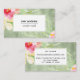 Boho Watercolor Flowers over Rustic Green Wood Business Card