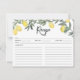 Elegant and rustic recipe card featuring watercolor lemon wreath. Bright and whimsical, perfect for spring showers and summer showers.