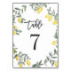Boho Watercolor Lemon Wreath Table 7 Table Number. Boho-inspired table number card featuring watercolor lemon wreath. Bright and whimsical, perfect for spring and summer weddings, bridal showers and so much more.
