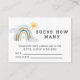 Bring some fun to your baby shower with this adorable "Guess How Many" game card! Featuring a soft watercolor rainbow, fluffy clouds, and golden accents, this boho-inspired design is perfect for a lighthearted challenge. Fill a jar with candies, pacifiers, or any small treats, and let guests take their best guess. The closest one wins a prize!