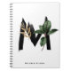 Customisable letter M monogram notebook featuring watercolor tropical palm leaf, faux gold foil leaf and black watercolor brush accents. Personalise this tropical monogram notebook by your name or other details. This boho letter M monogram notebook will be perfect as a gift. Other letters are available.