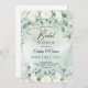 Boho watercolor white roses eucalyptus gold frame Bridal Shower invitation
