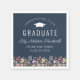 A beautiful watercolor floral border of wildflowers decorates the bottom edge of these trendy boho graduation party napkins. The words "congratulations to our graduate" surround a silhouette of a traditional mortarboard cap. Customise the white text on a navy blue background, with the graduate's name in handwriting script and the school and class year in sans serif font.