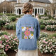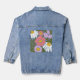 A modern wavy daisy flower design with white, lilac and coral blooms gives this denim jacket a retro, modern hippie, bohemian vibe. The design can be edited so that each coloured element can be changed to suit your personal style and make it completely unique to you.