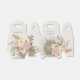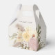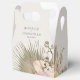 This modern wedding party favour box has bohemian inspired watercolor features, including rustic pampas grass, orchids, palm leaves, anthurium and protea flowers and a simulated gold frame around the circle. The beige background can be changed, or deleted if you want white. The copy is editable and the font can be changed. The card has a coloured background, a little darker than the front. You can change the back colour.