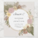 This label has bohemian inspired watercolor features, including pampas grass, orchids, palm leaves and protea flowers and a simulated gold frame around the circle. The background behind the circle can be changed, or deleted if you want white. The copy is editable and the font can be changed.
