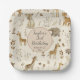 Boho White Beige Jungle Animals Birthday Paper Plate